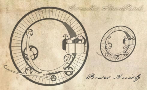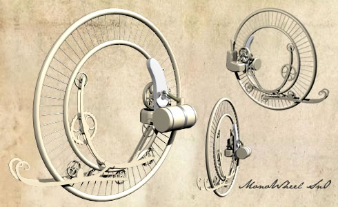 O modelo foi baseado principalmente em um MonoWheel a pedal divulgado pelo SteamPunk Lab e alterado tentando manter semelhança estética e trabalhando sob a idéia de que no Universo RetroFuturista a eficiência de motores a vapor é dezenas de vezes superior a que entendemos como possível.