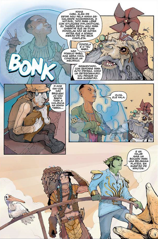 “Tendo isso em mente, depois que eu já tinha inventado a Nay, chegou o Mauro dando forma a todo esse universo (e aí já não tinha mais como imaginar o projeto sem ele!), e a Mariane Gusmão preenchendo essas formas com vida. Contando ainda com o craque Deyvison Manes nas letras, eu cheguei ao final desse trabalho sentindo que era eu quem estava fazendo parte de uma superequipe. O cara que chega de fora e fica deslumbrado com as habilidades dos parceiros, manja?”
