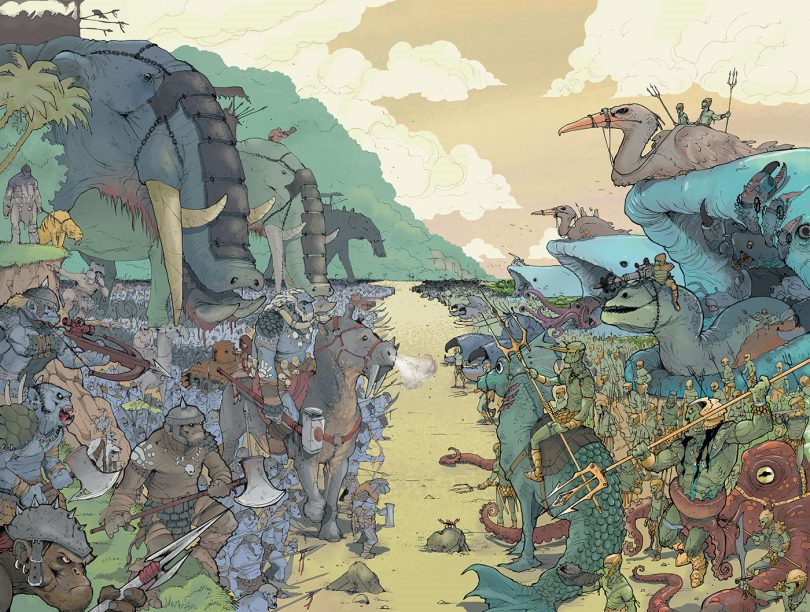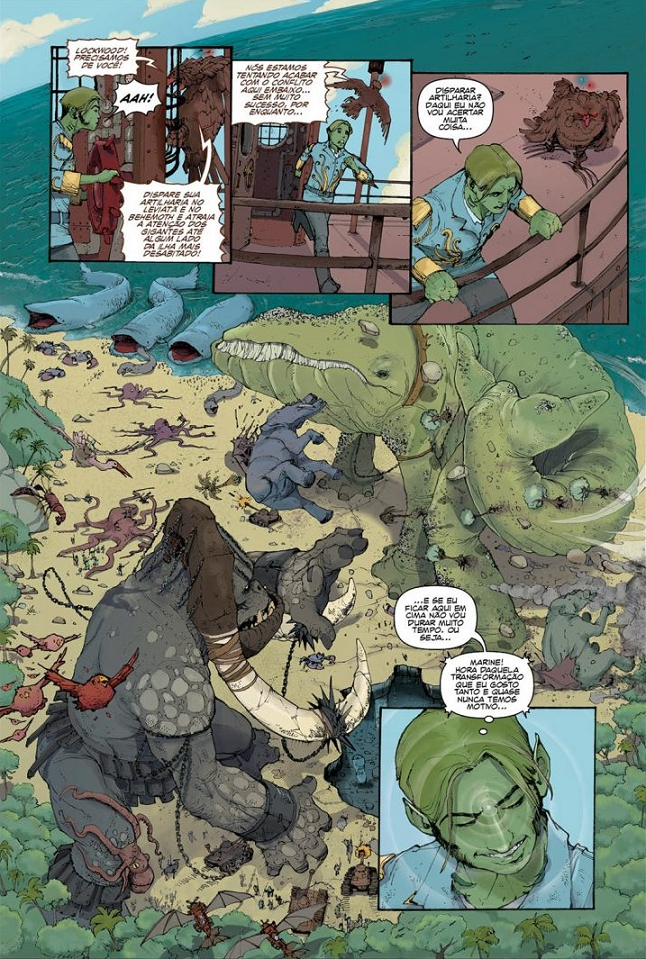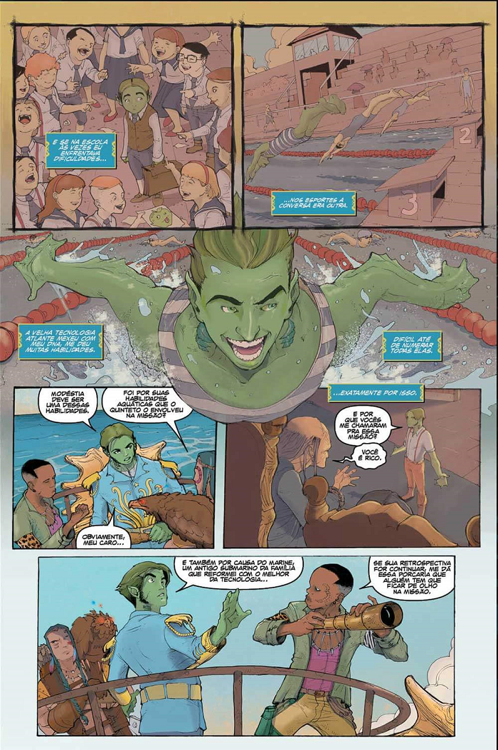 “E aí está. De minha parte, aproveitando a deixa do parágrafo anterior, essa é a uma declaração de amor aos quadrinhos de superequipes, às aventuras em ilhas com um segredo (elas sempre escondem algo. Malditos dinossauros, malditos tesouros, maldita escotilha) e à fantasia que sempre esteve presente em nossas vidas, graças aos grandes sonhadores que mantiveram a chama do impossível acesa.”