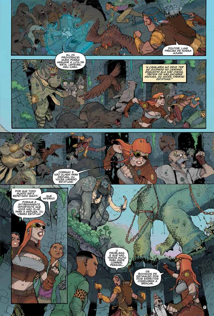 Uma aventura onde a magia de deuses antigos e monstros esquecidos encontram as engrenagens e autômatos de mentes muito à frente de seu tempo.