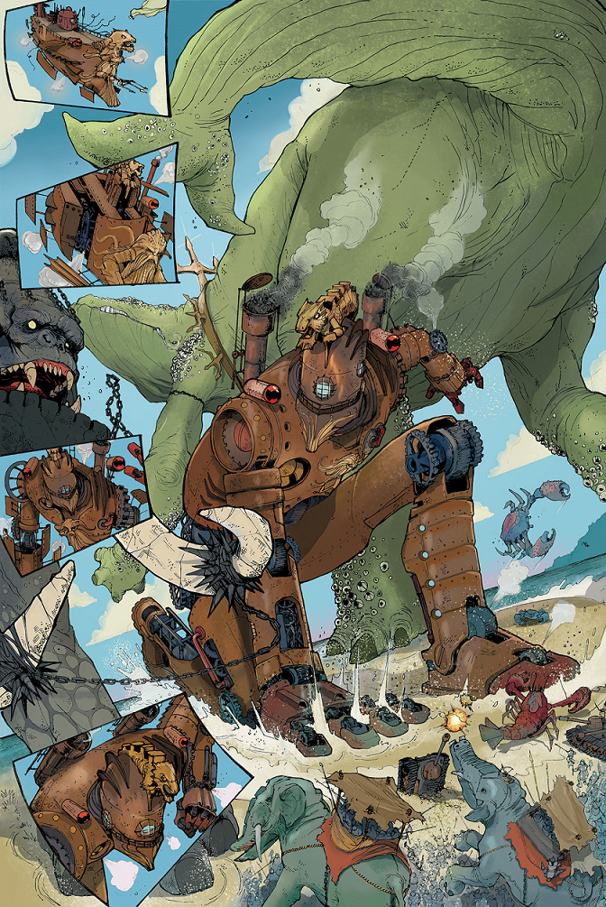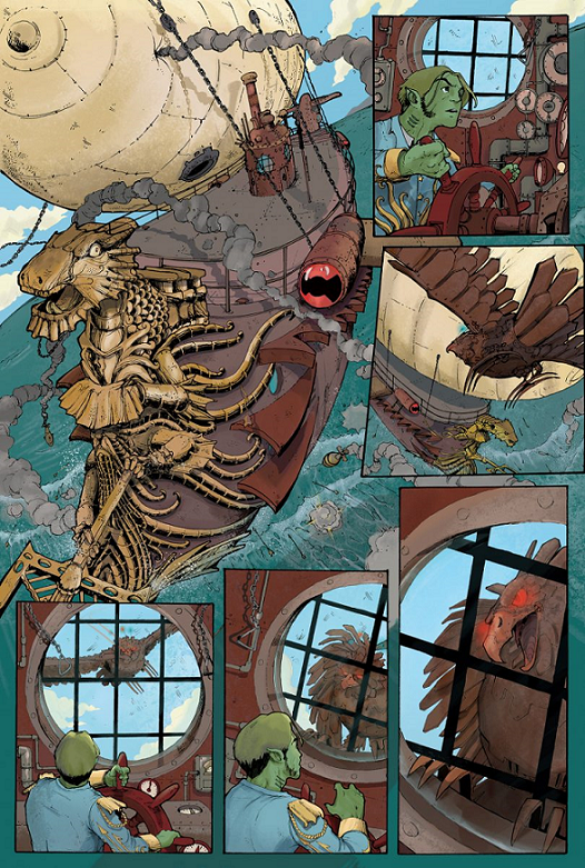 “Como eles sempre quiseram a estética steampunk, eu mantive isso e situei a história numa realidade paralela onde a Atlântida não foi totalmente destruída. Assim, a magia deles não desapareceu por completo da Terra, e a tecnologia foi influenciada por isso. Tanto que alguns fatos acabaram sendo antecipados, como a guerra das Malvinas, nesse primeiro volume, que no fim das contas acaba sendo disputada entre Nova Atlântida (meio que fazendo as vezes de Inglaterra) e Lemúria (ou Império Andino, representando Argentina e América do Sul).”